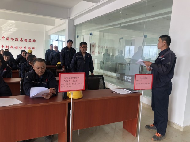 下午由安環(huán)部安全員段本洋主持培訓,培訓主要是讓大家熟悉了解應急預案的目的、流程、架構,明確自己所在崗位的職責,提高危機意識和責任意識,掌握現(xiàn)場應急知識和技能。公司董事長江孝林為應急預案總指揮,此次預案共設五個小組,現(xiàn)場各小組負責人分別向總指揮匯報小組職責并點名簽到。最后,董事長江孝林要求會后各小組負責人繼續(xù)討論具體實施方案。