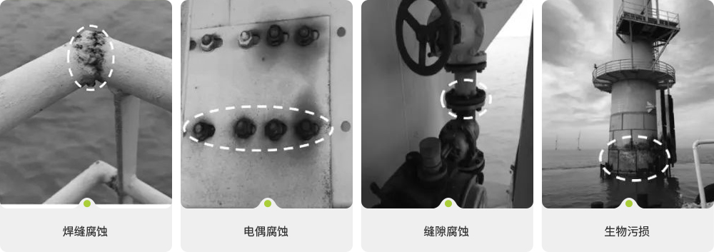 與陸地風電相比,海上風電所處的高濕度、高鹽霧、長日照、海水、海泥、漂浮物、浮冰等惡劣的海洋環境,必然使海上風機面臨嚴峻的腐蝕考驗,且維修成本巨大,因此海上風電設計壽命一般在25年以上,其防腐蝕設計壽命也應超過25年,同時腐蝕控制系統也必須能夠承受各種環境的考驗,比如海泥、海水、浪花飛濺、海洋大氣以及持續的機械損傷、磨損。