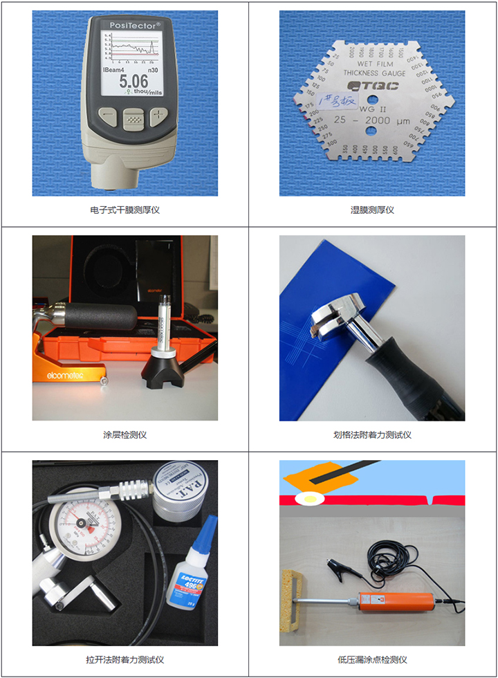 涂裝檢驗(yàn)工具有很多種類,有些是試驗(yàn)室使用的,有些是工作現(xiàn)場(chǎng)使用的。這里介紹的只是作為技術(shù)服務(wù)工程師在工作現(xiàn)場(chǎng)所要攜帶和使用的檢驗(yàn)工具,它們包括: